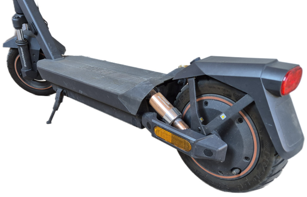 Navee GT3 elektromos roller – a zökkenőmentes közlekedés új szintje! A 700 W-os csúcsteljesítményének köszönhetően könnyedén megbirkózik akár 18%-os emelkedőkkel is. A négyszeres lengéscsillapító rendszer és a 10 colos, defektálló tubeless gumiabroncsok gondoskodnak a kényelmes, stabil utazásról még egyenetlen terepen is.